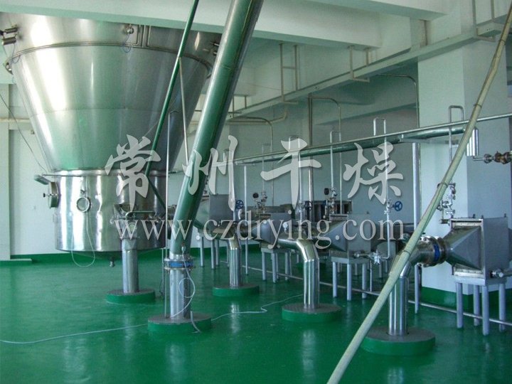 中藥浸膏高速離心噴霧裝置是離心式噴霧干燥技術在特定物料干燥中的應用 ,也是利用高速離心式霧化器使物料分散成霧狀,與熱空氣所充分接觸 ,完成瞬間